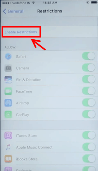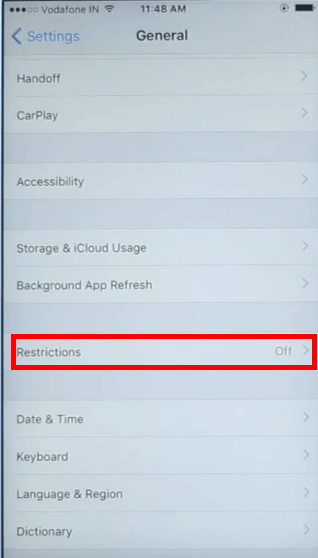 แล้วแอปอื่นๆที่ไม่ใช่ของ Apple จะซ่อนอย่างไรนั้น จากหน้ารายการ Restrictions ให้แตะที่ Apps ก็จะมีแอปพวก rate ต่าง หากแตะที่ Don’t Allow Apps แอปอื่นๆที่ไม่ใช่ของ Apple ก็จะซ่อนหมดทันที , หากแตะที่เรตต่างๆเช่น 12+ แอป ที่ 4+ จนถึง 12+ ก็จะกลับมาโชว์บนหน้าจออีกครั้ง และถ้าเลือก Allow All Apps แอปทุกแอปที่ติดตั้งบน iOS ที่เคยถูกซ่อนก็จะกลับมาปกติ