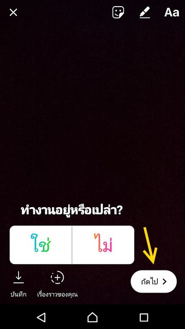 จากนั้นย้ายสติ๊กเกอร์ โพลล์ ไปอยู่ตำแหน่งที่ต้องการและเหมาะสม แล้วแชร์ขึ้น Instagram Stories ได้เลย โดยแตะที่ถัดไปแล้วเลือกแชร์ขึ้นโปรไฟล์ตัวเองตามปกติ