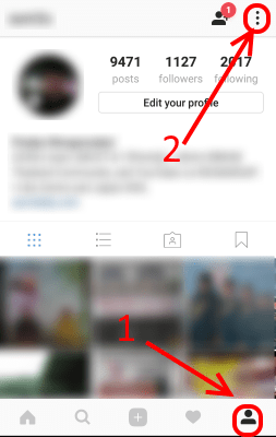 ก่อนอื่นเริ่มจาก เปิดแอป Instagram ก่อน แล้วแตะที่แท็บไอคอนรูปคน (Profile) จากนั้นแตะไอคอน 3 จุดด้านมุมขวาบนของจอ