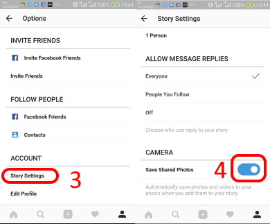 จากนั้นเลือกที่ Story Settings แล้วดูที่หมวดหัวข้อ CAMERA ให้เลื่อนสวิตซ์ที่ Save Shared Photos ให้เป็น ON สีฟ้าๆแบบนี้ แค่นี้วีดีโอที่แชร์ขึ้น Instagram Stories ในครั้งต่อไป ก็จะบันทึกวีดีโอลงบนสมาร์ทโฟนด้วย