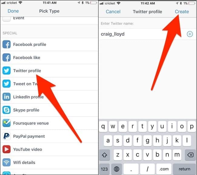 แล้วใส่ชื่อ twitter user ของคุณแล้วแตะ Create เพื่อสร้าง QR CODE ได้เลย