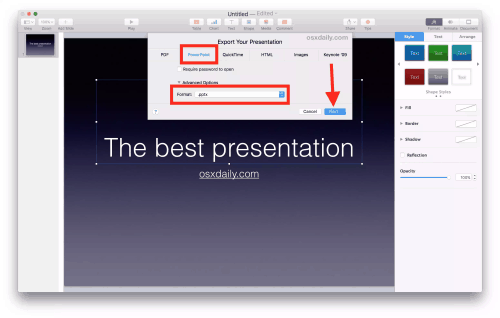ก็จะได้ไฟล์เอกสารที่สร้างจาก Keynote มาแปลงเป็นไฟล์ PowerPoint แล้ว สามารถเปิดไฟล์บนโปรแกรม Microsoft Office ได้