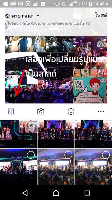 แล้วแตะไอคอนตามลูกศรสีแดงชี้นี้ ซึ่งอยู่บริเวณมุมซ้ายล่างของรูป