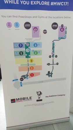 แม้ภายในงานจะใหญ่กว้างมากๆ แต่คุณสามารถสังเกตที่ป้ายตามจุดต่างๆรวมถึงหน้าจอทัชสกรีนที่แสดงผังบูธต่างๆภายในงาน ที่สำคัญมีโปรโมต pokestop ในการจับโปเกมอน ในเกม Pokemon GO ด้วย ซึ่่งปีนี้ CEO ของ Niantic ผู้สร้างเกมนี้ก็มาเยือนงาน MWC 2017 ด้วย