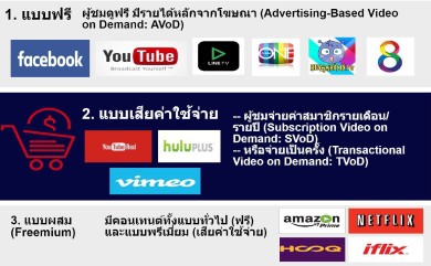 (1) ผู้ให้บริการอิสระ ซึ่งได้แก่ ผู้ให้บริการสัญชาติไทย (เช่น Hollywood HDTV, Doonee และ Primetime) และต่างชาติ (เช่น YouTube, Facebook, Line TV และ Netflix)