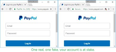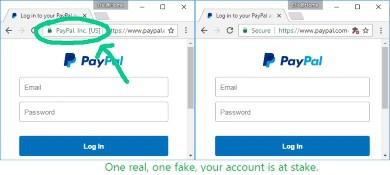 หากกรณีท่องเว็บ paypal ขึ้นกุญแจเขียวต้องระบุด้วยว่าเป็นของ paypal.com จริงๆแบบด้านซ้ายมือด้วย ส่วนด้านขวาจะของปลอม เพราะเป็นเป็น SSL จากเว็บอื่นๆ