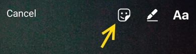 วิธีการง่ายๆคือ แตะไอคอนกล้องบริเวณมุมซ้ายบนของจอ จากนั้นก็แตะสั้นๆเพื่อถ่ายรูปปกติ หรือแตะค้างเพื่อถ่ายวีดีโอตามปกติ จากนั้นเลือกไอคอนสติ๊กเกอร์ด้านบน