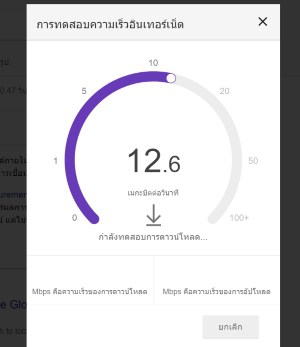 ระบบก็จะทดสอบความเร็วเน็ตโดยแสดงเป็นค่าความเร็วให้คุณเห็น