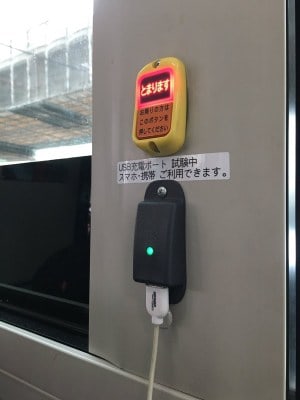 โดยบนรถบัสสาธารณะญี่ปุ่นที่ชื่อ Toei Bus นั้นมีจุดชาร์จไฟสำหรับชาร์จแบตเตอรี่สมาร์ทโฟนผ่านทาง USB ตรงช่องเสียบสีดำใกล้ๆกดกริ่งลงรถนั่นเอง และมีบริการถึง 5 จุดด้วยกัน ตอนนี้เริ่มติดตั้งแล้วบางคันเพื่อทดสอบความนิยมว่ามีผู้ใช้บริการชาร์จมือถือบนรถบัสมากน้อยแค่ไหน ก่อนที่จะพิจารณาบริการชาร์จมือถือบนรถบัสสาธารณะ ฟรี