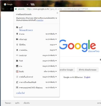นอกจากนี้ เวลาคลิกปุ่มสถานะของเว็บไซต์ จะเห็น Permission การเข้าถึงต่างๆว่ามีความเป็นส่วนตัวมากน้อยแค่ไหน ด้วย