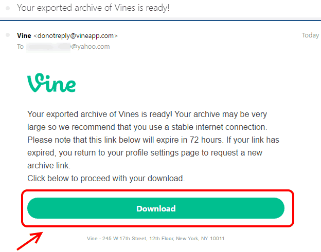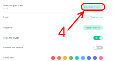 หรือบนเว็บ vine.co ขึ้นเป็นปุ่ม Download Archive ละก็ คลิกที่ปุ่ม Download Archive เพื่อดาวน์โหลดวีดีโอ คอมเม้นท์ และ Like บนเว็บไซต์ vine ของเราทั้งหมด ลงบนคอม ทั้งนี้ลิงค์ดังกล่าวจะหมดอายุภายใน 72 ชั่วโมง