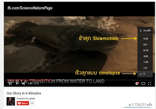 เทคนิคนี้เหมาะสำหรับการนำเสนอแบบสดๆทางออนไลน์ในการดูภาพช้า หรือแบบเร็วๆก็แปลกตาอีกแบบ อย่างไรก็ตามฟีเจอร์การเล่นวีดีโอ speed เร็ว – เล่นวีดีโอช้า Slow motion นี้ ใช้ได้เฉพาะเว็บไซต์ Youtube บนคอมพิวเตอร์เท่านั้น บนแอปจะไม่มีการเร่งความเร็วในส่วนนี้