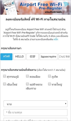 ขั้นตอนการลงทะเบียนใช้ Wi-Fi สนามบินล่วงหน้า