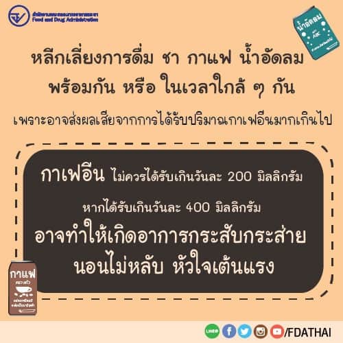 ดังนั้น จึงควรดื่มเครื่องดื่มชา กาแฟ หรือเครื่องดื่มที่มีกาเฟอีนเป็นส่วนประกอบในปริมาณที่เหมาะสม ไม่มากจนเกินไปจนส่งผลเสียต่อร่างกาย