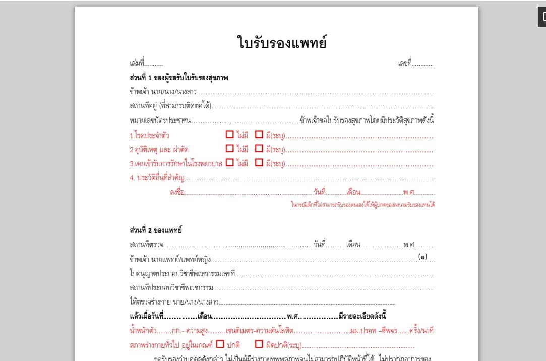 สำหรับใบรับรองแพทย์ตามแบบที่แพทยสภารับรองดังกล่าว(2551) สถานพยาบาลส่วนใหญ่ใช้เป็นมาตรฐานอยู่แล้ว สำหรับสถานพยาบาลที่ยังใช้แบบฟอร์มเดิม ทางแพทยสภาได้ประชาสัมพันธ์และเผยแพร่แบบฟอร์มดังกล่าวบนเว็บไซต์ โดยสามารถดาวน์โหลดตัวอย่างได้ที่เว็บไซต์แพทยสภา