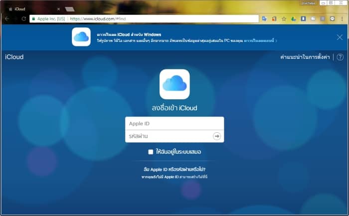ให้เข้าไปที่แอป Find my iPhone