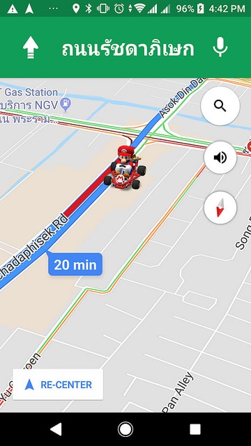 ได้แล้ว มาริโอบน Google Maps ก็เดินทางตามตัวมาริโอได้เลย ทั้งนี้มาริโอจะปรากฎบนแอป Google Maps ถึงวันที่ 16 มีนาคมนี้เท่านั้น