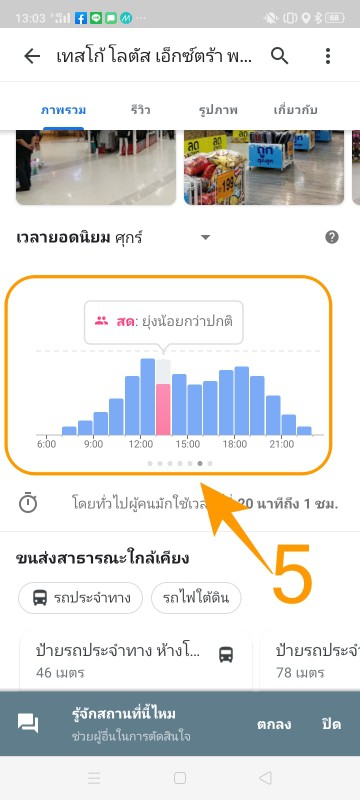 จากนั้นเลื่อนลงมาด้านล่างไปเรื่อยๆก็จะรายงานสดแบบ Real-Time ว่าช่วงเวลานี้มีคนแน่นมากน้อยแค่ไหน ในลักษณะกราฟสดๆ โดยรายงานล่าสุดนี้ว่า น้อยกว่าปกติ แบบนี้คุณสามารถเดินทางไปช้อปได้โดยไม่ต้องกังวลว่ามีคนเยอะ