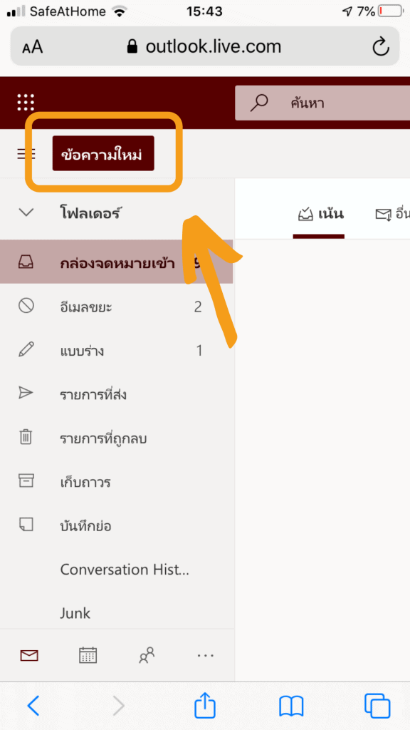 เข้า Outlook ใน Google หรือ Safari เมื่อเข้ามาแล้ว จากนั้นแตะเครื่องหมาย “aA”