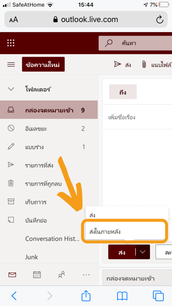 แล้วจะมีแถบเลือกระหว่าง “ส่ง/ ส่งในภายหลัง” ให้เลือก “ส่งในภายหลัง”