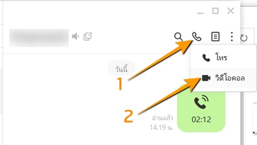 เลือกเพื่อนที่จะคุย แล้วคลิกไอคอนรูปโทรศัพท์ >> เลือก วีดีโอคอล