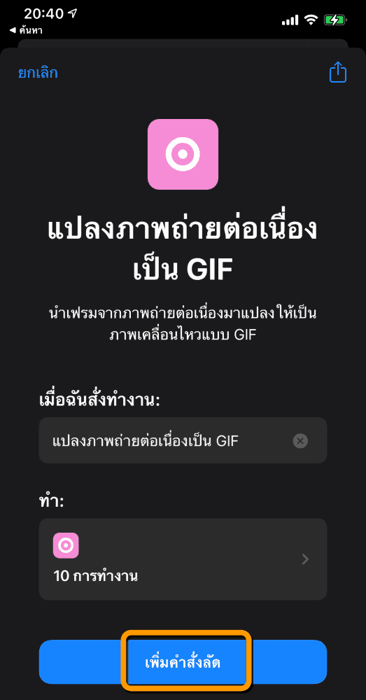 แตะปุ่ม เพิ่มคำสั่งลัด