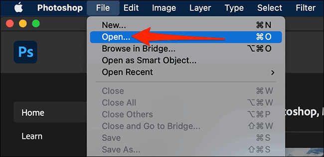 เปิดโปรแกรม Photoshop ขึ้นมา แล้วคลิกแท็บ file เลือก open เลือกไฟล์ PDF ที่จะเอาภาพออก