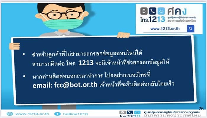 *ข้อมูลทั้งหมดที่กรอกจะส่งไปยังธนาคารแห่งประเทศไทยทั้ง 3 เว็บไซต์ดังกล่าว