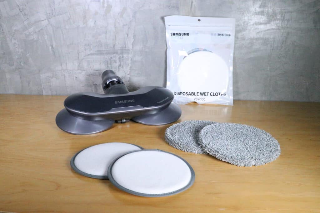 Samsung Jet 75 สามารถแปลงร่างจากเครื่องดูดฝุ่นไร้สาย เป็นที่ถูพื้นได้ เพียงเราเปลี่ยนที่ถูฝุ่นแบบหมุน Spinning Sweeper มีที่ติดผ้าแผ่นหมุนแบบปีกคู่ โดยครั้งแรกที่ซื้อ ภายในกล่องจะมีที่ถูพื้น 3 แบบ