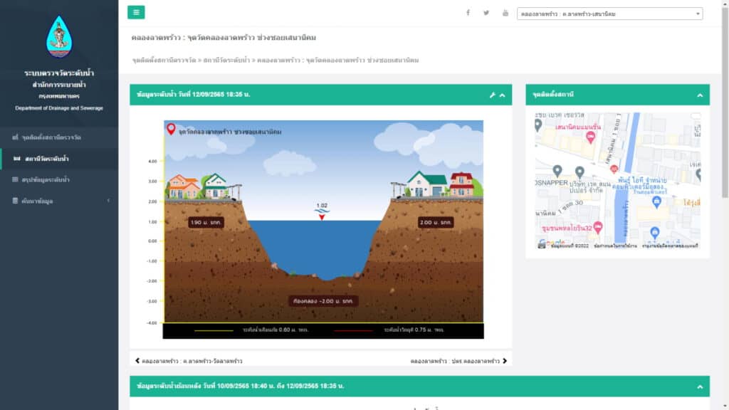 เมื่อคลิกที่ดูรายละเอียดสถานี จะแสดงระดับน้ำในปัจจุบันในรูปภาพ และจุดติดตั้งแผนที่