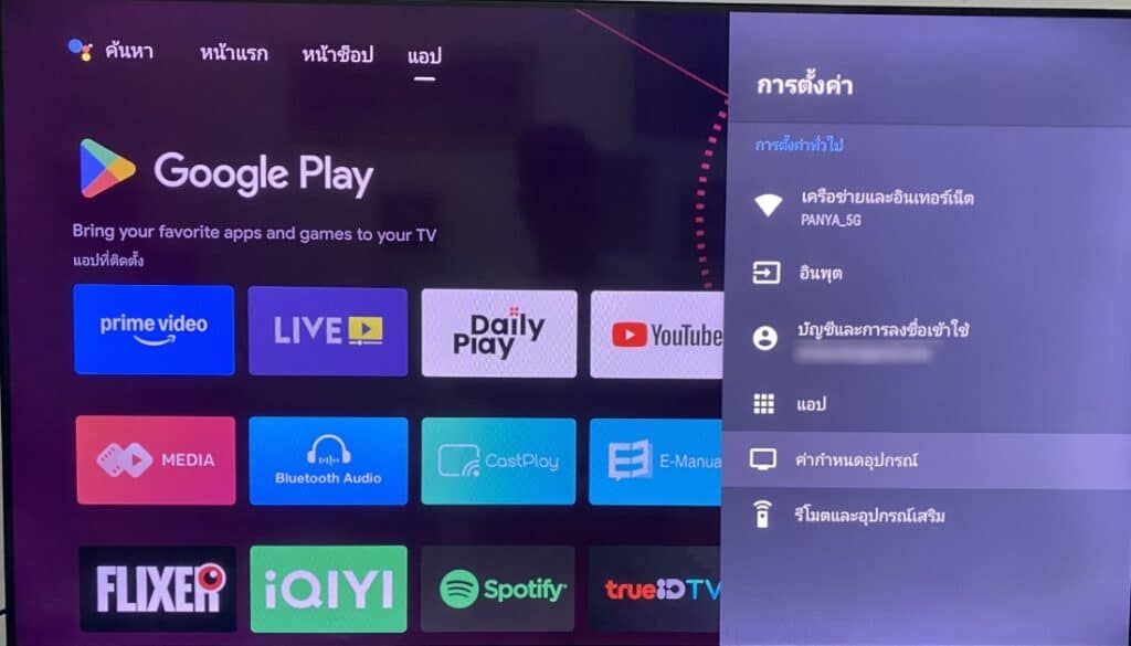 เข้าไปที่การตั้งค่า ของ Android TV