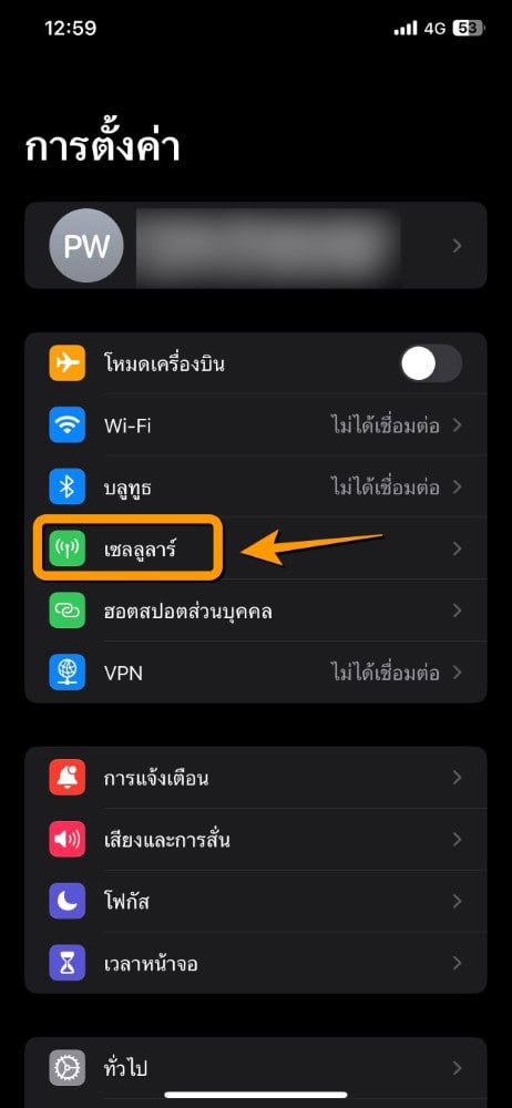 เลือก ตัวเลือกข้้อมูลเซลลูลาร์