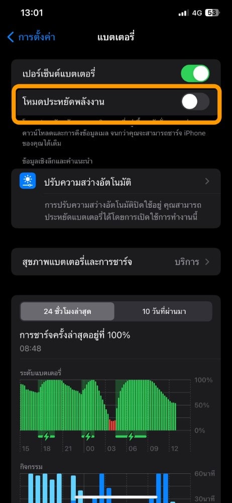 2. ปิดโหมดประหยัดพลังงาน