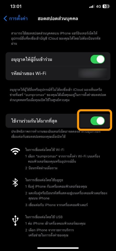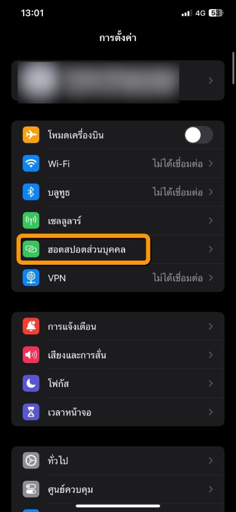- hotspot ของ iPhone ถูกปิดใช้งาน