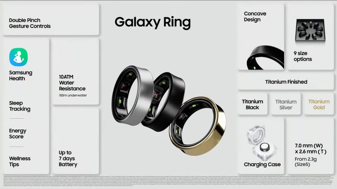Galaxy Ring คืออุปกรณ์สวมใส่รุ่นใหม่ล่าสุดจาก Samsung ที่มุ่งเน้นไปที่การทำให้ชีวิตของคุณมีสุขภาพดีและง่ายขึ้น มีข้อมูลสเปคดังนี้