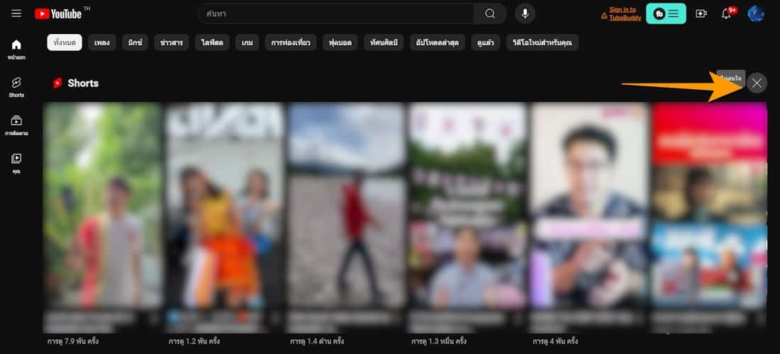 เลื่อนมาหากเจอฟีด Shorts เรียงแบบนี้ สังเกตว่าจะพบ X คุณสามารถเลือก X เพื่อปิดได้เลย