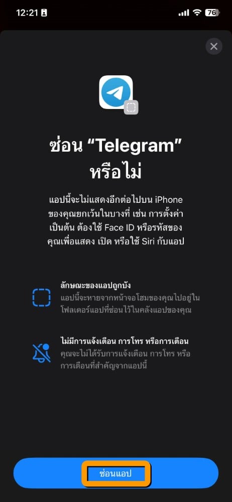 จะขึ้นซ่อนแอปนั้นหรือไม่ แตะที่ปุ่ม ซ่อนแอป