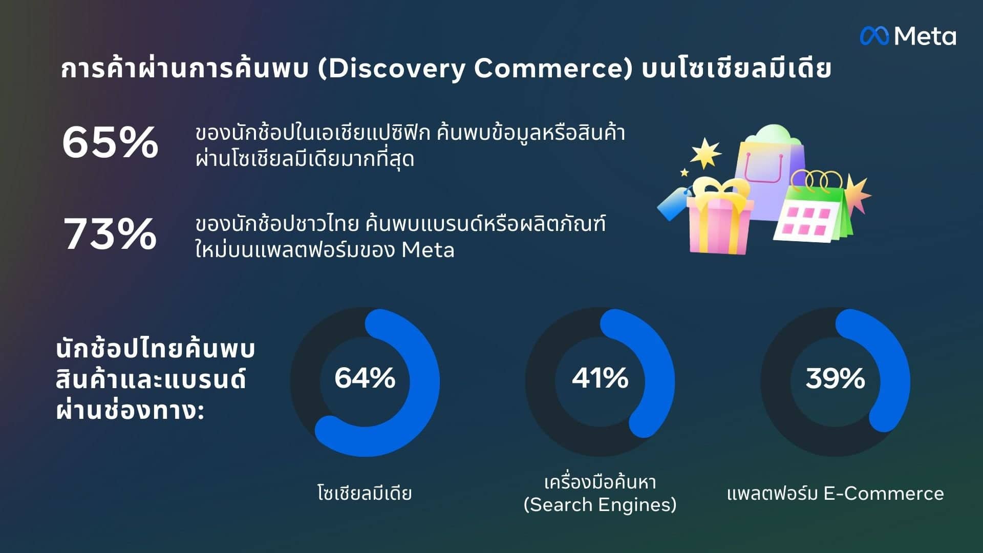 - 73% ของคนไทยบอกว่าเจอแบรนด์หรือสินค้าใหม่ๆ ผ่านแพลตฟอร์ม Meta