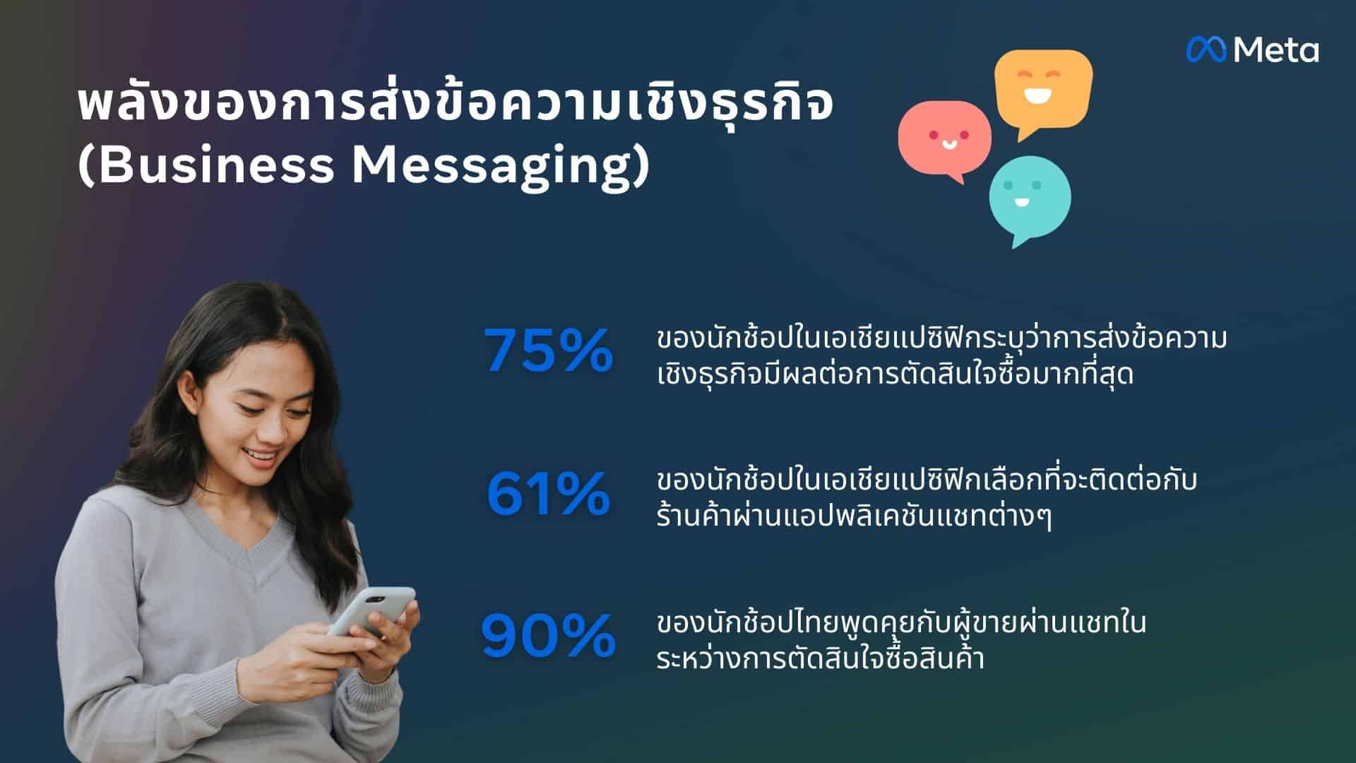 ผลการศึกษาเผยให้เห็นข้อมูลเชิงลึกที่สำคัญหลายอย่าง โดย 75% ของผู้ตอบแบบสอบถามจากภูมิภาคเอเชียแปซิฟิกระบุว่า การส่งข้อความเชิงธุรกิจ (Business Messaging) และคำแนะนำจากครีเอเตอร์มีบทบาทสำคัญต่อการตัดสินใจซื้อ และนี้คือ 5 วิธีเพิ่มยอดขายที่คุณต้องรู้! ที่จะให้คุณขายดีในช่วงเทศกาล