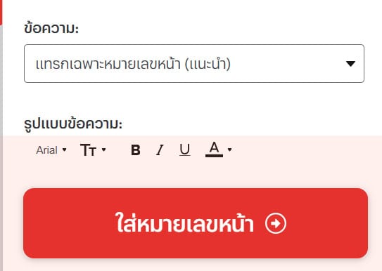ระบบจะตรวจสอบและแนะนำว่า จะใส่เลขหน้าด้านไหน คุณสามารถตั้งค่าเริ่มของตัวเลข ตำแหน่งเลขหน้าได้ตามต้องการ