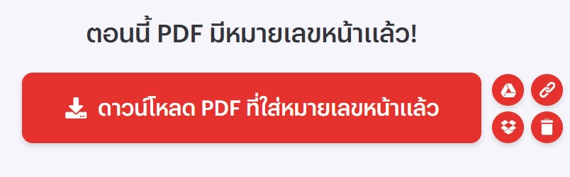 รอสักครู่ก็จะได้ไฟล์ PDF ที่ใส่เลขหน้าเรียบร้อยแล้วให้คลิกดาวน์โหลด หรือบันทึกลงบน Google Drive , Dropbox หรือสามารถแชร์ลิงก์ได้