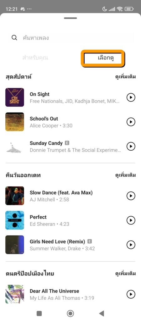 แตะที่ชื่อเพลง เพื่อเปลี่ยนเป็นเพลงอื่น