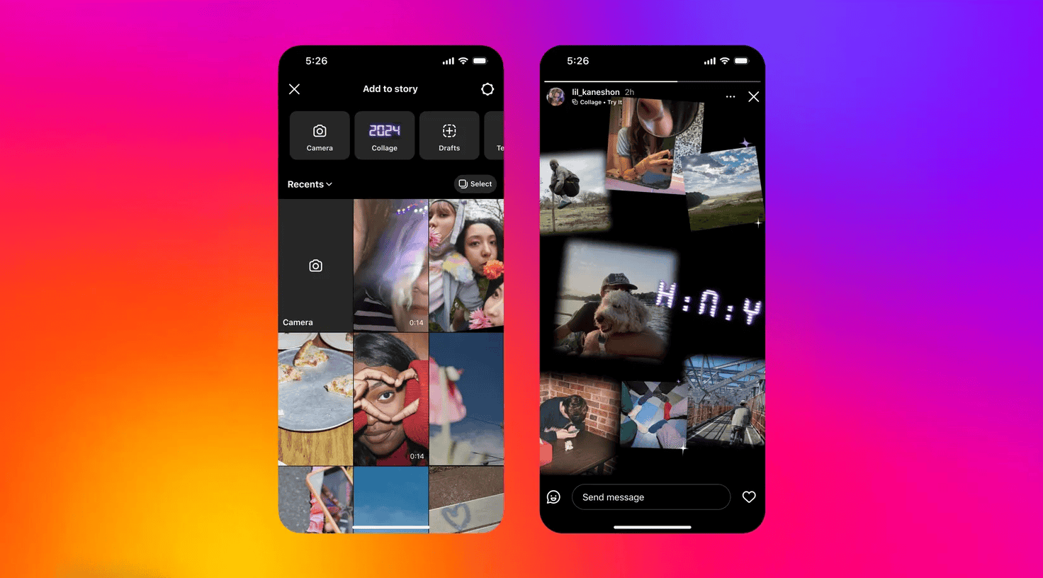โดยคุณสามารถสร้างเรื่องราวแบบคอลลาจ ได้เพียงเพิ่มรูปภาพลงใน Story ปรับขนาด เลื่อนไปมาบนหน้าจอ จากนั้นเพิ่มรูปภาพอื่นๆ เป็นสติกเกอร์ ฟีเจอร์เลย์เอาต์ของ Instagram ยังช่วยให้คุณเพิ่มรูปภาพหลายภาพลงใน Story ได้ แต่รูปภาพเหล่านั้นจะปรากฏในรูปแบบตารางเท่านั้น