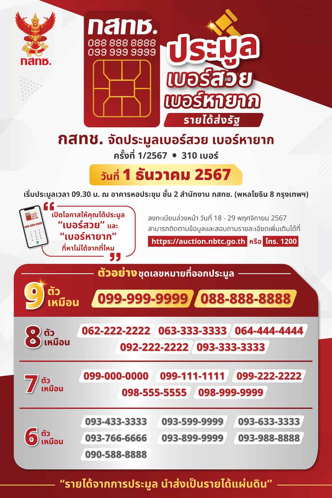 อย่ารอช้า! รีบเตรียมตัวให้พร้อม แล้วมาร่วมงานประมูลเบอร์สวย เพื่อเป็นเจ้าของเบอร์ที่ถูกใจ และร่วมสร้างรายได้เข้ารัฐไปพร้อมกัน ติดตามข้อมูลเพิ่มเติมสามารถติดตามได้ทางเว็บไซต์ https://auction.nbtc.go.th/