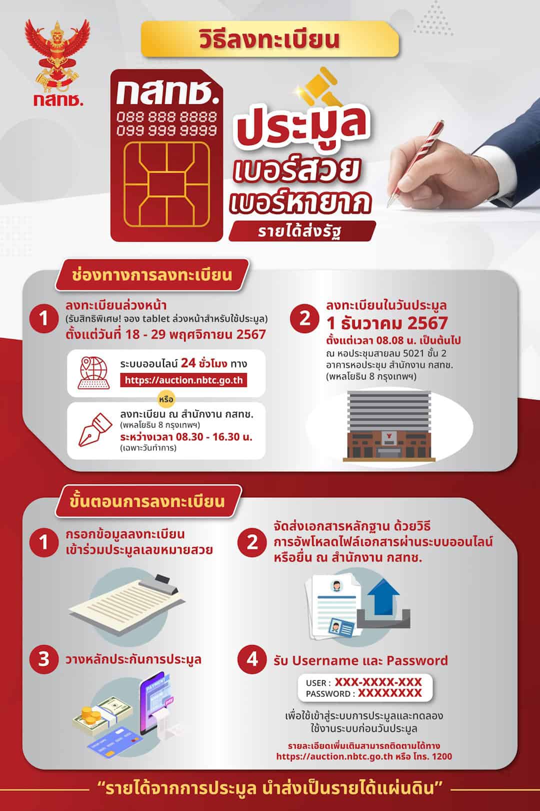 - ลงทะเบียนล่วงหน้า: ผ่านเว็บไซต์ https://auction.nbtc.go.th/