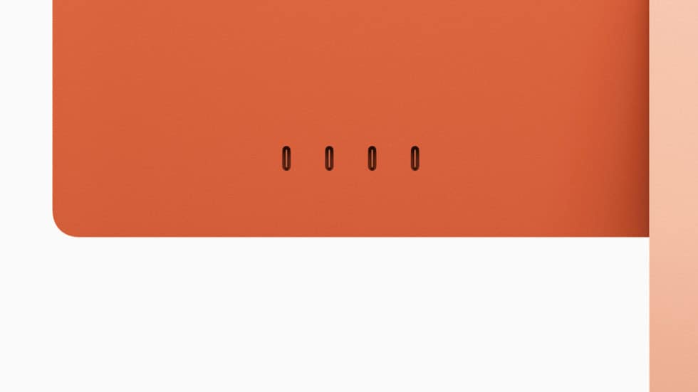 พอร์ต USB-C ทั้ง 4 พอร์ตบน iMac ใหม่รองรับ Thunderbolt 4 เพื่อการถ่ายโอนข้อมูลที่เร็วสุดขั้ว ผู้ใช้จึงสามารถเชื่อมต่อกับอุปกรณ์เสริมได้มากยิ่งขึ้น ไม่ว่าจะเป็นอุปกรณ์จัดเก็บข้อมูลภายนอก แท่นวาง หรือจอภาพภายนอกระดับ 6K สูงสุด 2 จอ เท่ากับว่าผู้ใช้จะได้ทำงานบนผืนผ้าใบขนาดใหญ่ที่มีพิกเซลมากกว่า 50 ล้านพิกเซลเลยทีเดียว