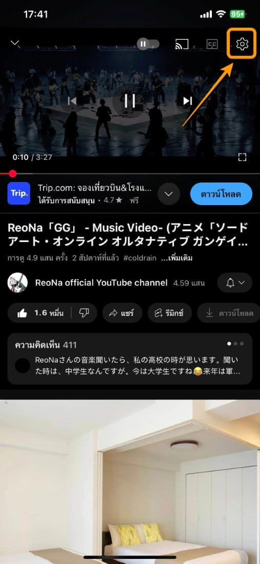 ผู้ใช้สามารถเข้าไปตั้งเวลาในการปิดคลิปได้ โดยแตะไอคอนการตั้งค่าของ YouTube ที่มุมขวาด้านบนของคลิป
