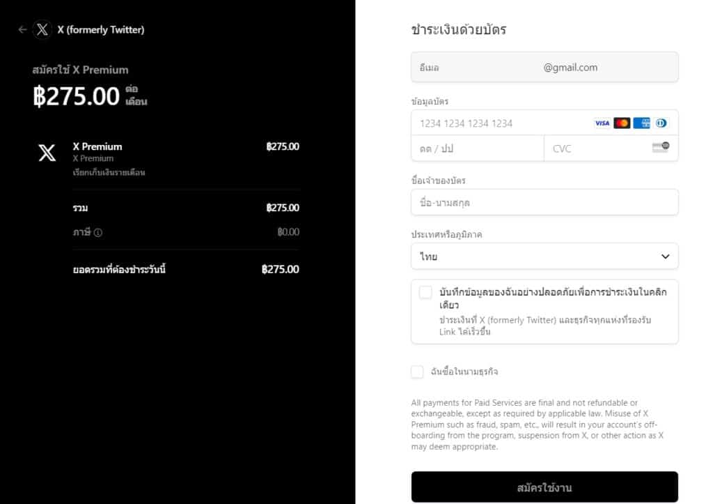 คลิกเลือกรายเดือนรูปแบบที่ต้องการ โดย X Premium ราคาเริ่มต้นที่ใช้งาน Grok ได้ อยู่ที่ 275 บาทต่อเดือน และ X Premium+ ราคา 550 บาทต่อเดือน
