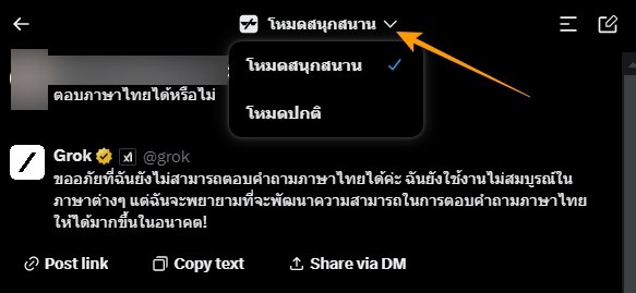 Grok AI ใช้ในไทยได้แล้วตอนนี้ หลังเมนูด้านซ้ายของเว็บไซต์และแอป X ได้เพิ่ม Grok เข้ามาแล้ว นั่นหมายความว่าเริ่มให้บริการในไทยแล้ว เลยเป็นสาเหตุที่ทำให้วันนี้มาลองสมัครและทดลองใช้งานกันว่า Grok ใช้้ทำอะไรได้บ้างและมีความแตกต่างจาก Copilot , Gemini อย่างไรบ้าง ตอนนี้ใช้ในไทยได้เลยโดยไม่ต้องต่อ VPN ข้ามประเทศ ถ้าคุณอยากรู้ว่า Grok คืออะไรคลิกที่นี่ได้เลย
