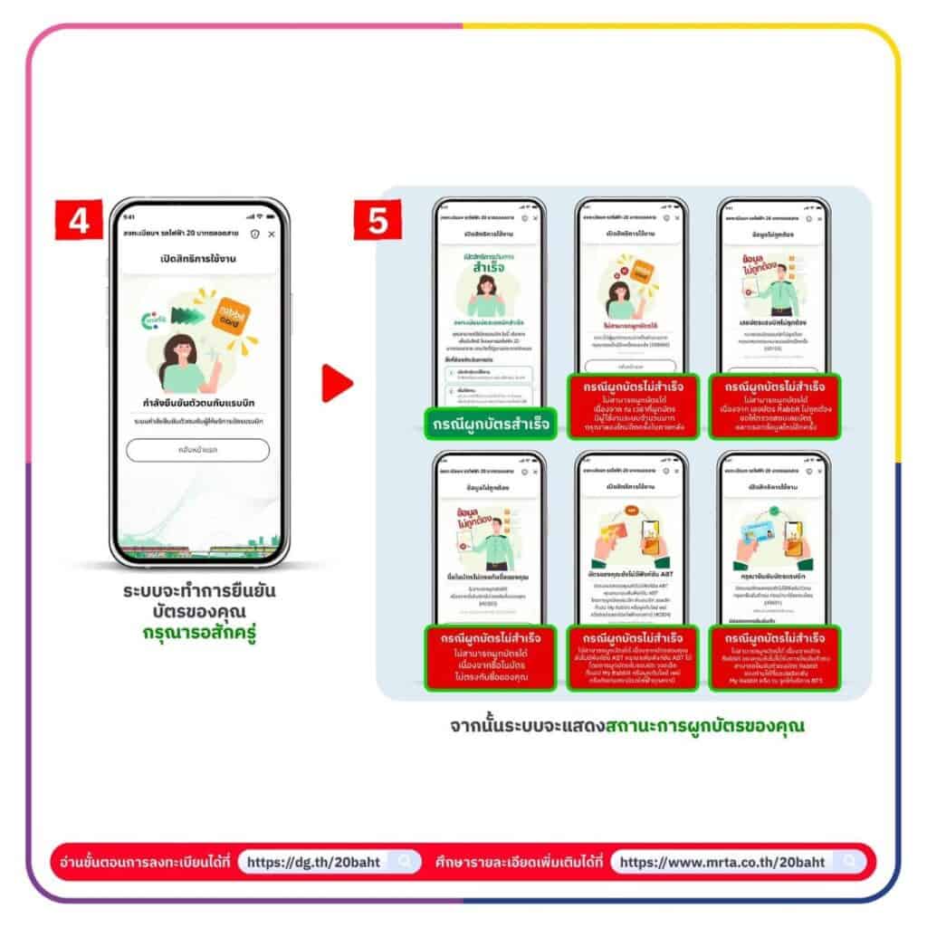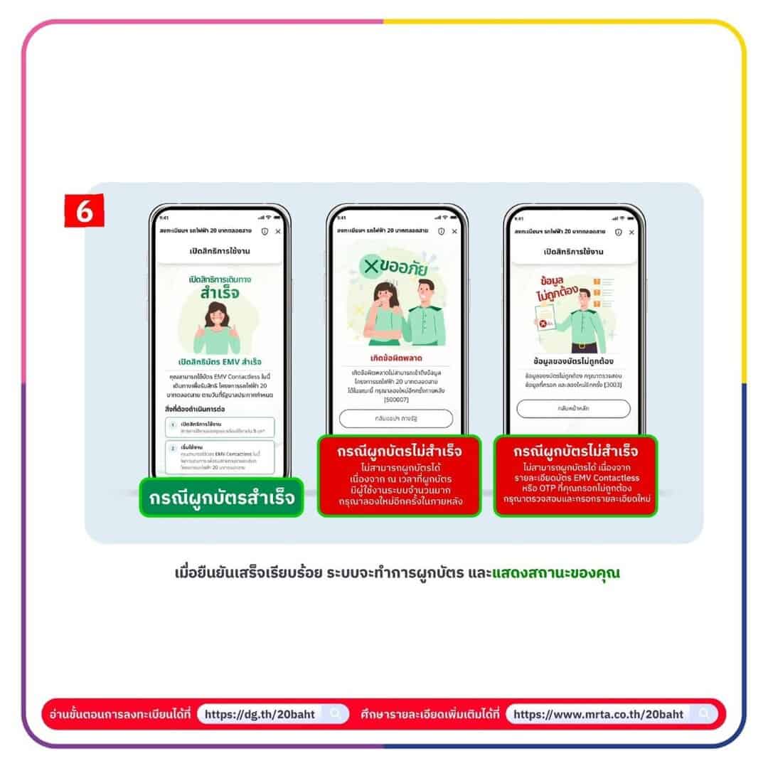 หากทำครบถ้วนจะขึ้นสถานะผูกบัตรสำเร็จ หากไม่สำเร็จกรุณาอ่านสาเหตุการผูกบัตรไม่สำเร็จและทำตามขั้นตอนครบถ้วนตามที่แอปกำหนด